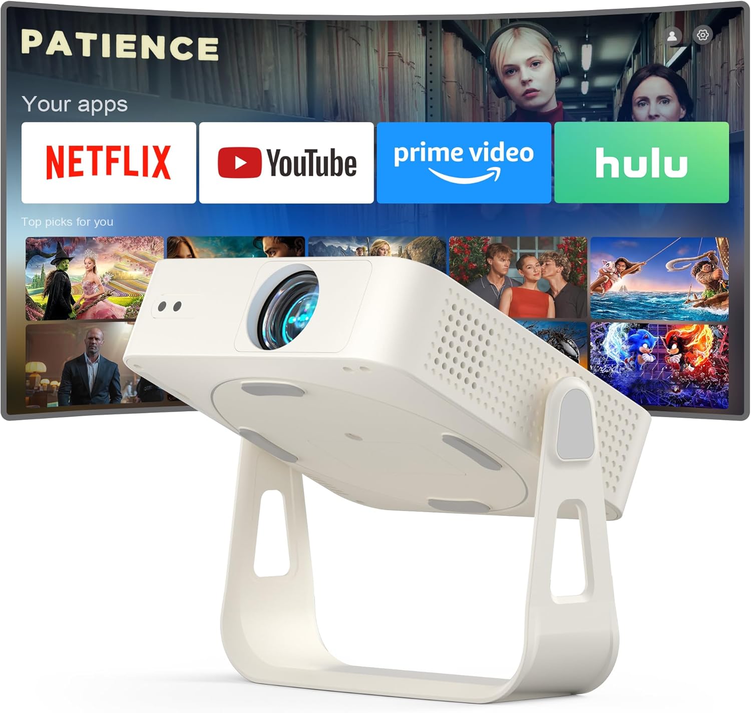 Exciting Moments Begin - The mini projector compatible with Netflix for the ultimate viewing experience.No extra devices or complicated setup needed—just enjoy instant access to a vast library of movies with immersive, smart TV-like quality.smart projectors are compatible with a variety of built-in apps like YouTube and Prime Video, and support for wireless screen mirroring and HDMI. Whether it's movie night, a gaming session, or camping, our licensed projectors can meet your customized entertainment needs.